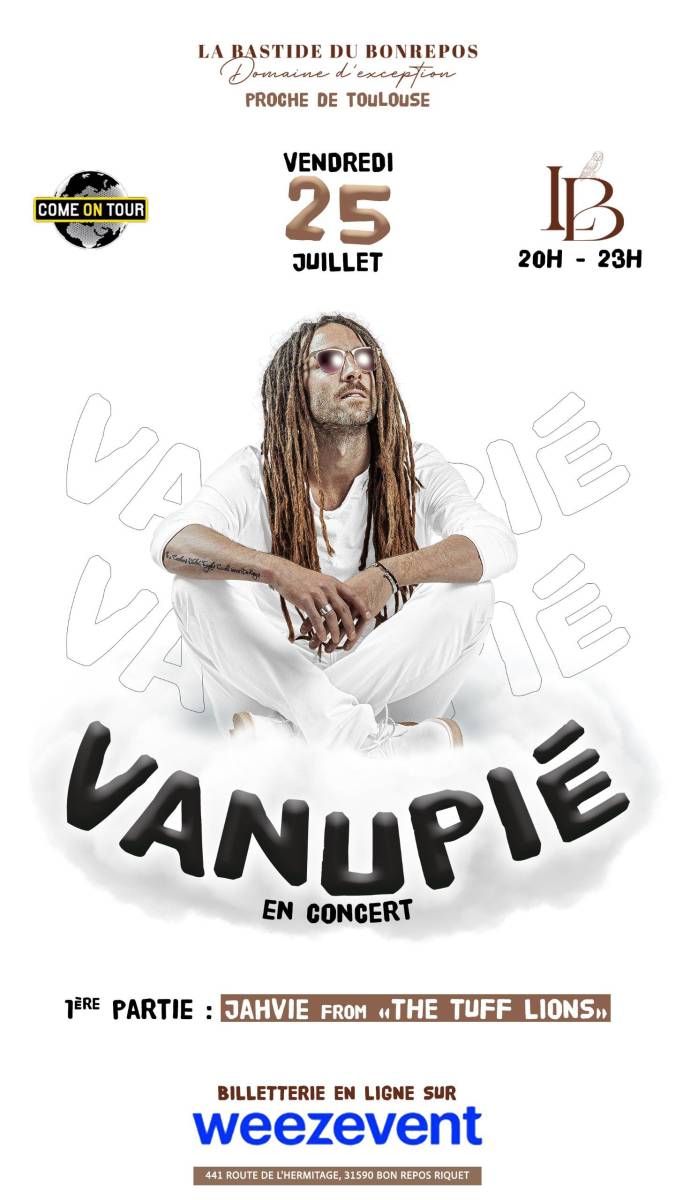 Le vendredi 25 juillet 2025, La Bastide du Bonrepos accueillera Vanupié pour un concert sous les étoiles, entouré de nature et de bonne vibration.
